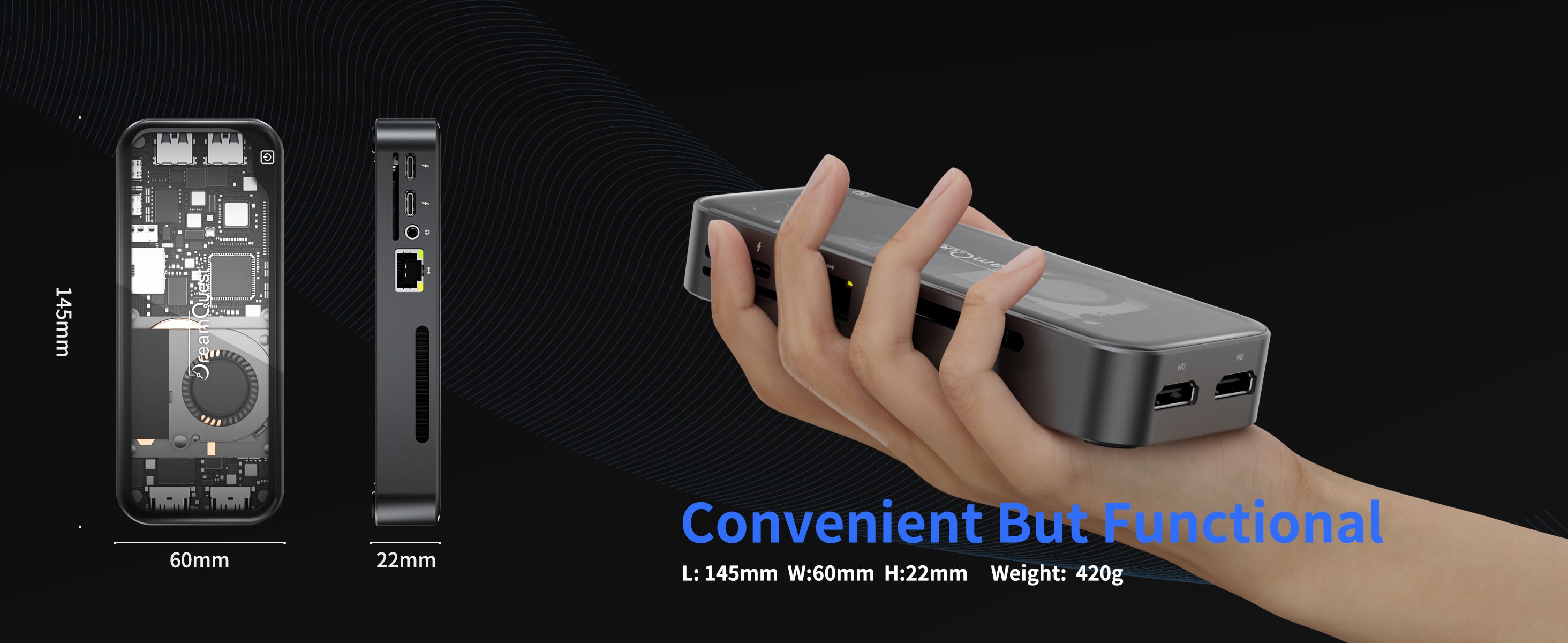 I love this little machine! It works great and runs fast... The only problem I have, is finding a place for the monitor and keyboard, which are larger than the PC! I'm very happy!